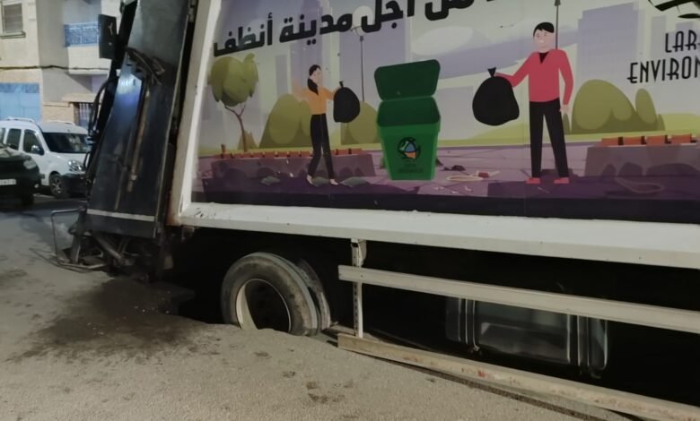 العرائش… الطريق تنهار في تجزئة الخضراء وشاحنة تُحتجز تحت الأرض